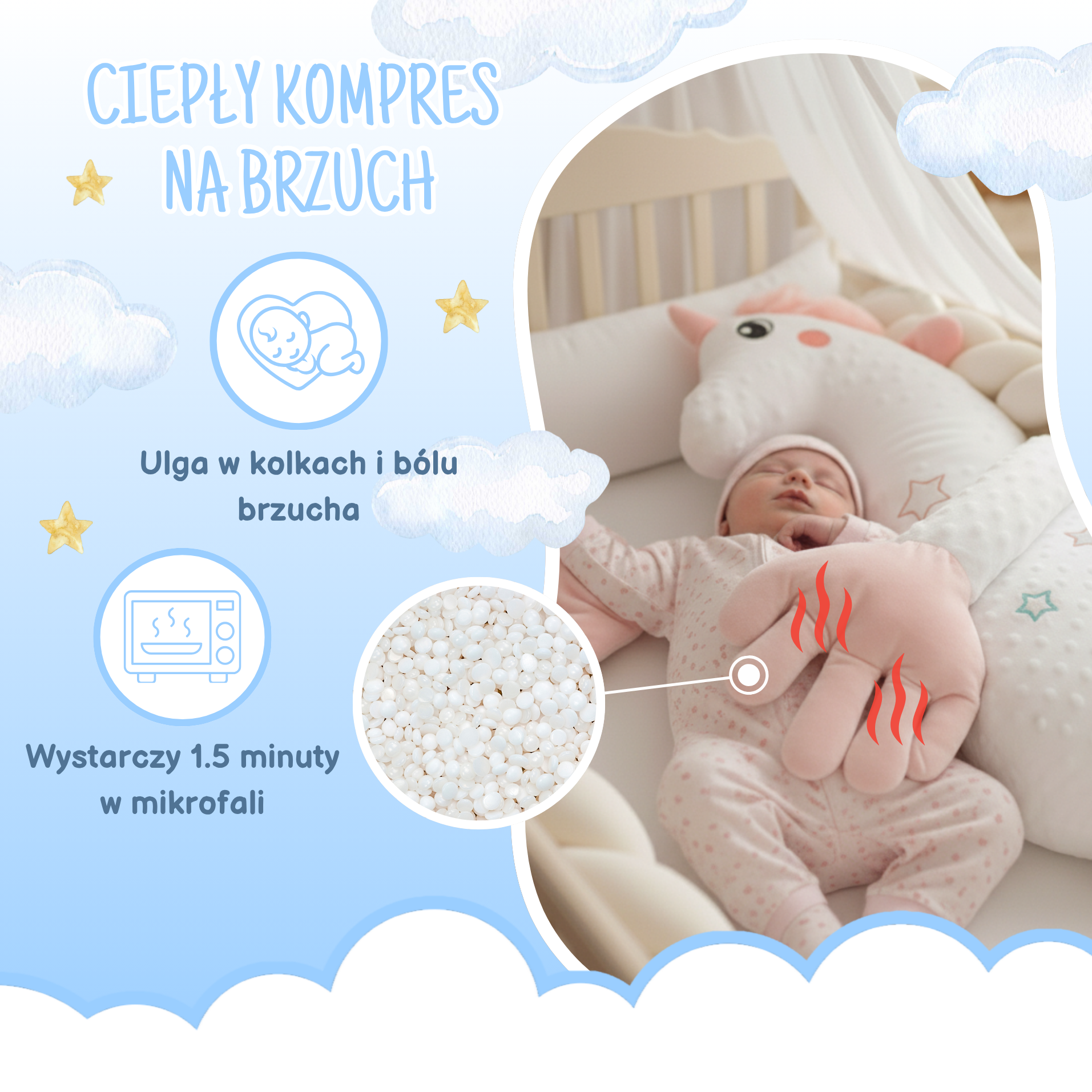 Eine in Klepisio versteckte warme Kompresse sorgt auf natürliche Weise für Linderung von Koliken und Bauchschmerzen .