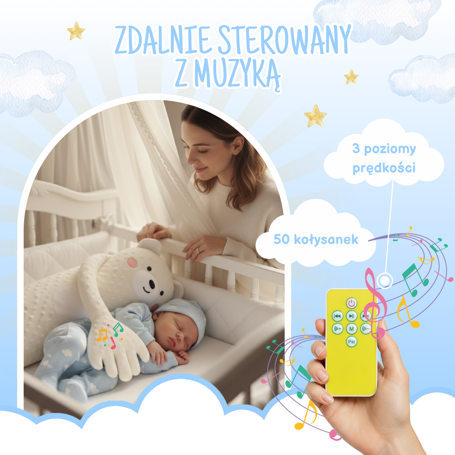 Klepiś zaczyna delikatnie i rytmicznie klepać – dokładnie tak, jak robi to rodzic, gdy uspokaja maluszka. Ten znajomy, kojący ruch sprawia, że dziecko szybciej zasypia i czuje się bezpiecznie.