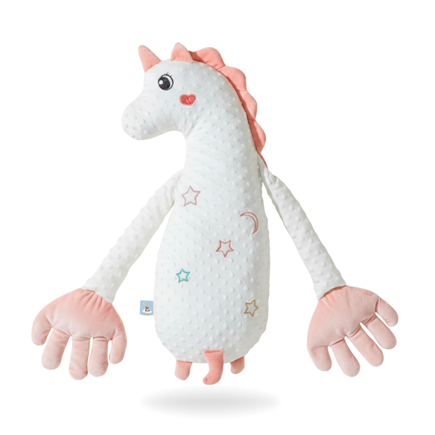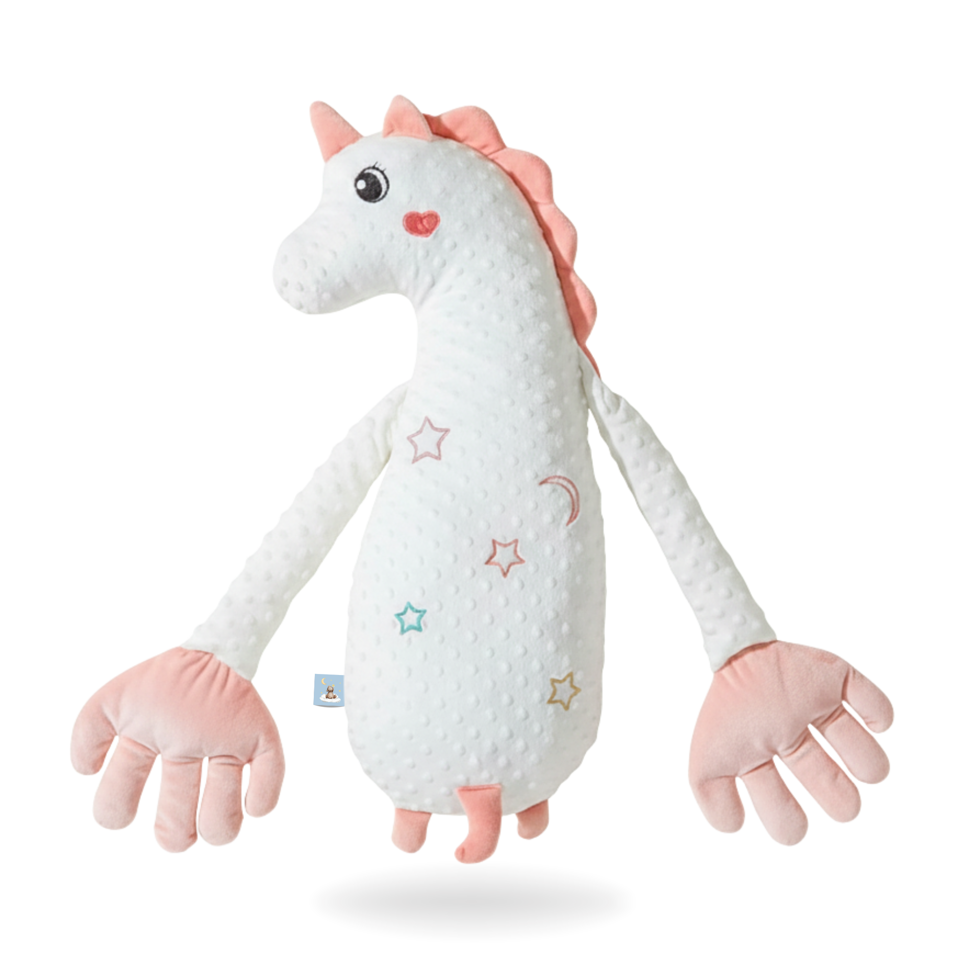 Ułóż Klepisia obok swojego dziecka – na brzuszku, pleckach lub tuż przy nim. Maluch od razu poczuje obecność miękkiej, przyjaznej maskotki, która wprowadza atmosferę bezpieczeństwa i bliskości.