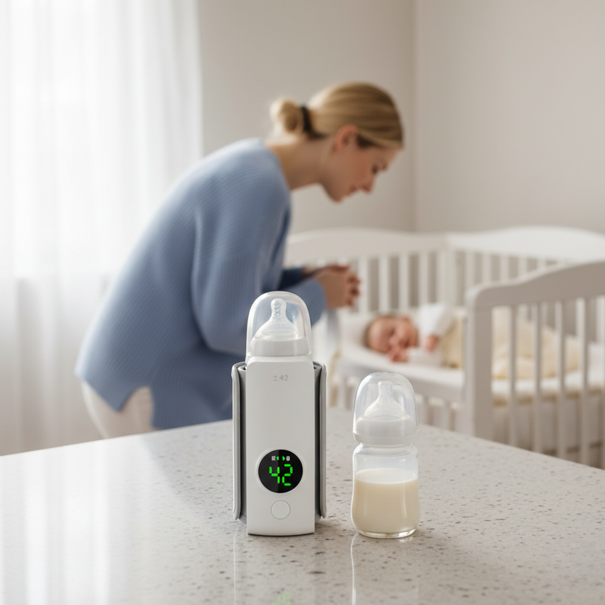 Entwickelt für Eltern, die ihrem Baby jederzeit und überall warme Milch geben möchten – stressfrei und ohne langes Warten. Damit bereiten Sie in wenigen Augenblicken eine Flasche in der perfekten Temperatur zu. Schluss mit Thermoskannen, Kabeln und der Suche nach einer Küche unterwegs.