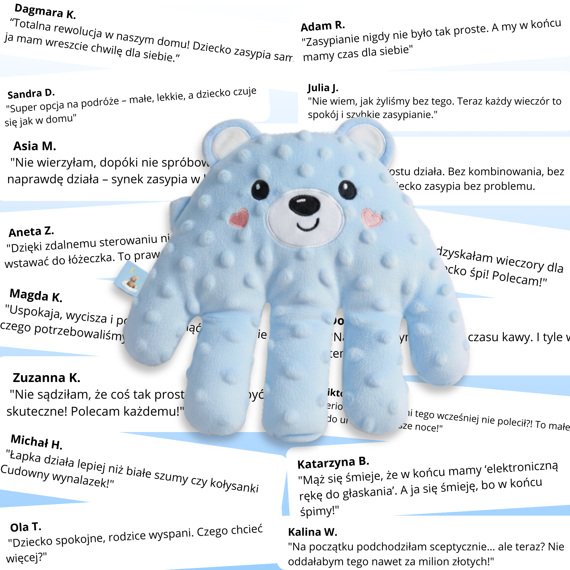 👉 Pamiętaj, że każde dziecko jest inne – niektórym potrzeba kilku dni, aby przyzwyczaić się do nowego „przyjaciela do snu”. W większości przypadków Klepiś staje się niezastąpionym wsparciem w codziennym usypianiu.
