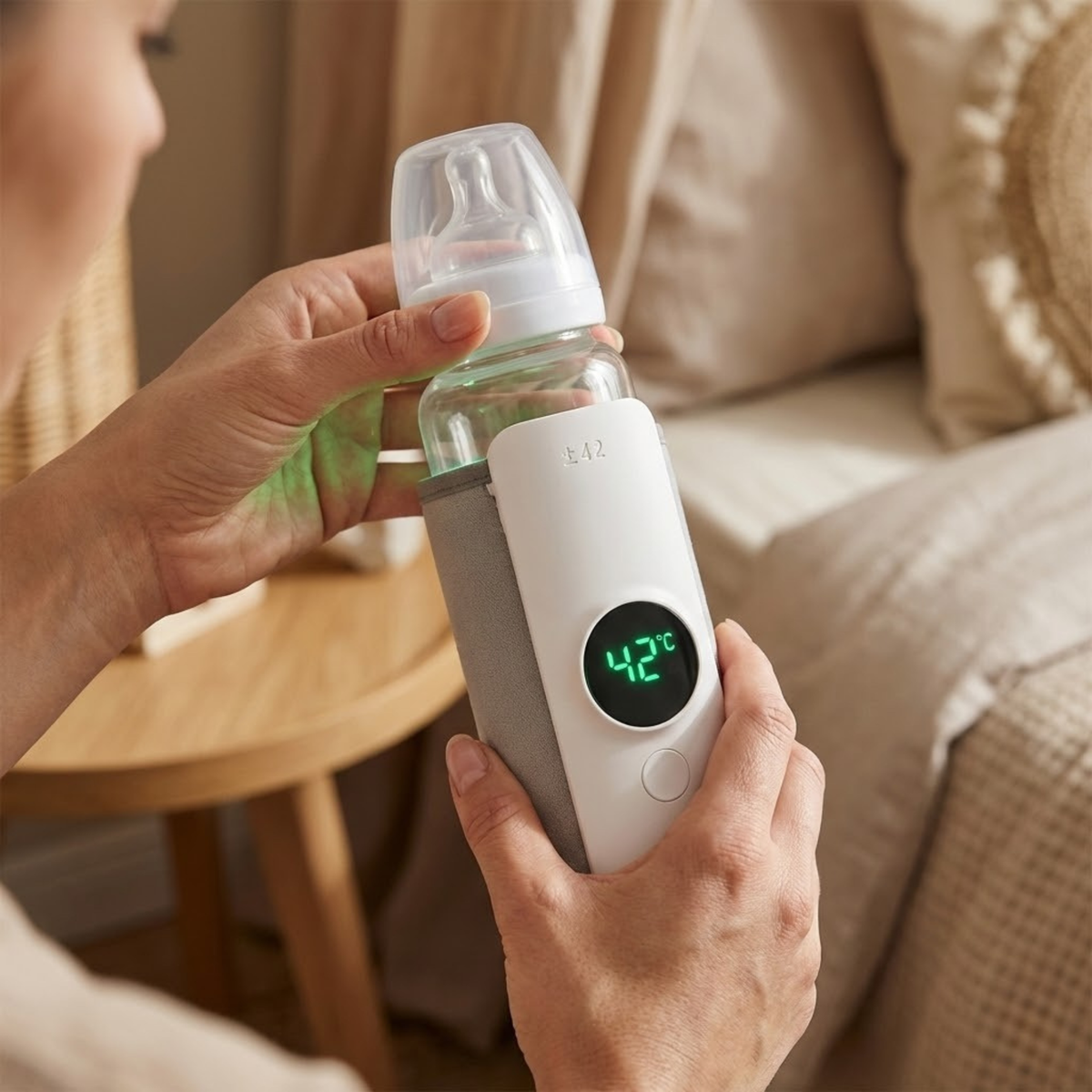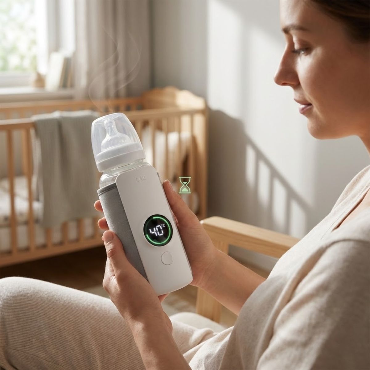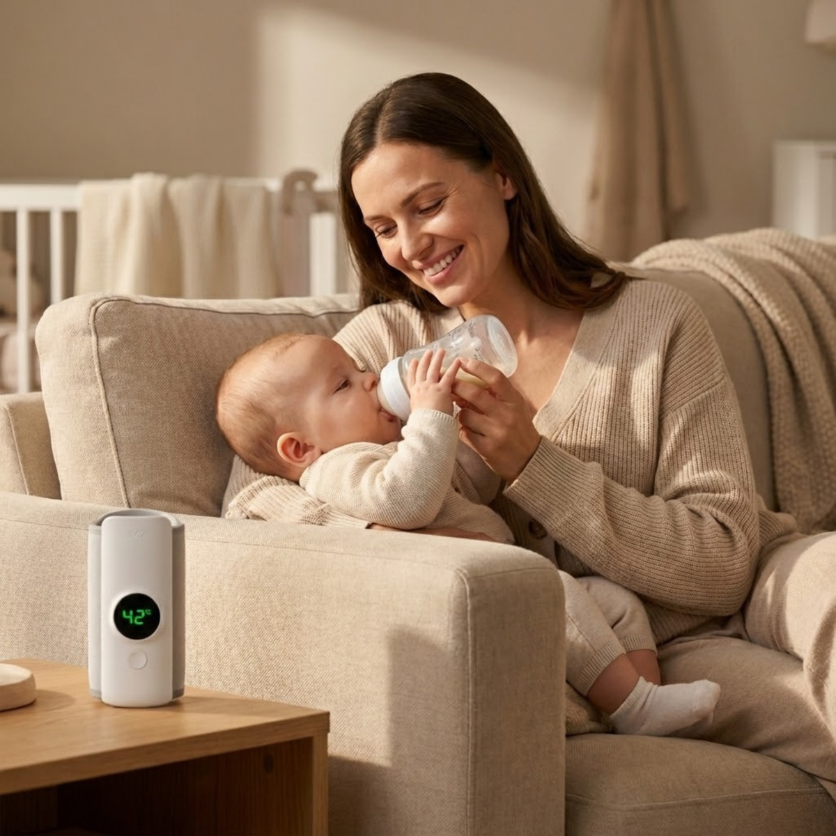 Gdy mleko osiągnie odpowiednią temperaturę, wystarczy wyjąć butelkę i nakarmić dziecko – szybko, wygodnie i bez stresu.